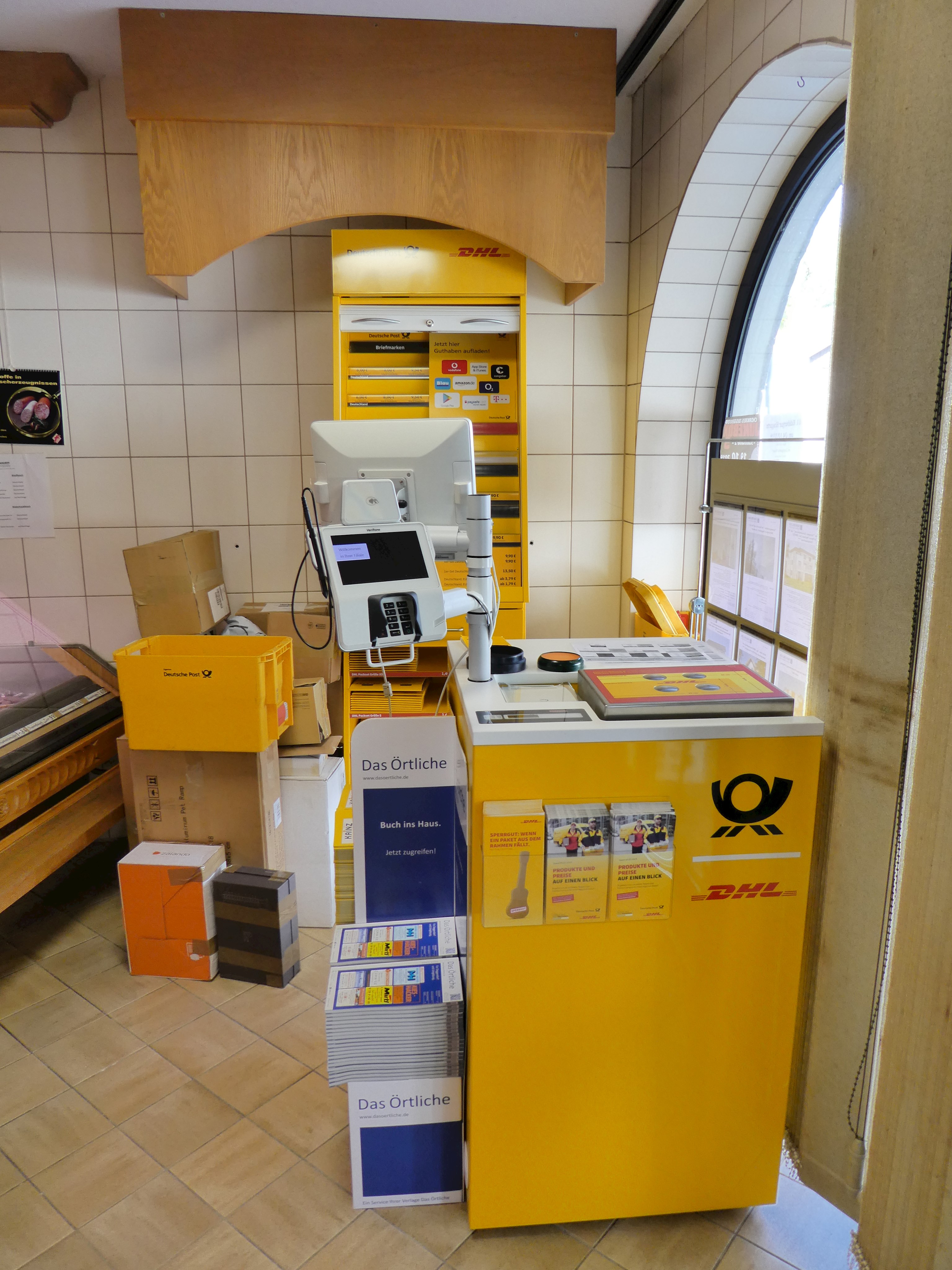 Die aufgegebene Post wird täglich gegen 15 Uhr von DHL abgeholt.
